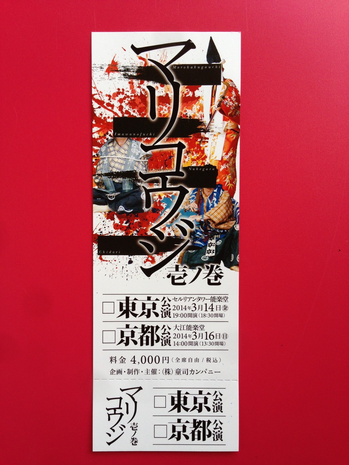 12月23日のHANAGATAの公演(於:金剛能楽堂)にてチケット販売ブースを設けさせて頂くことになりました。
